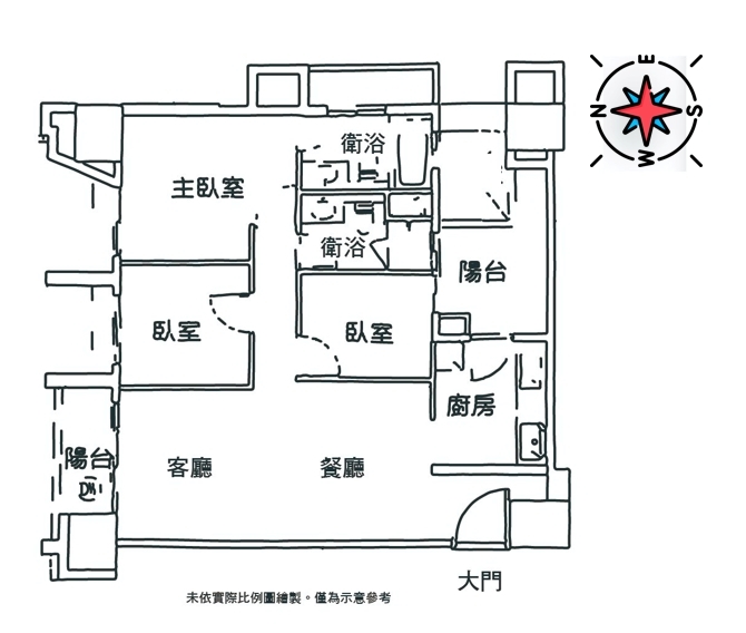 1.邊間三房二廳雙衛有開窗,停車地點近電梯