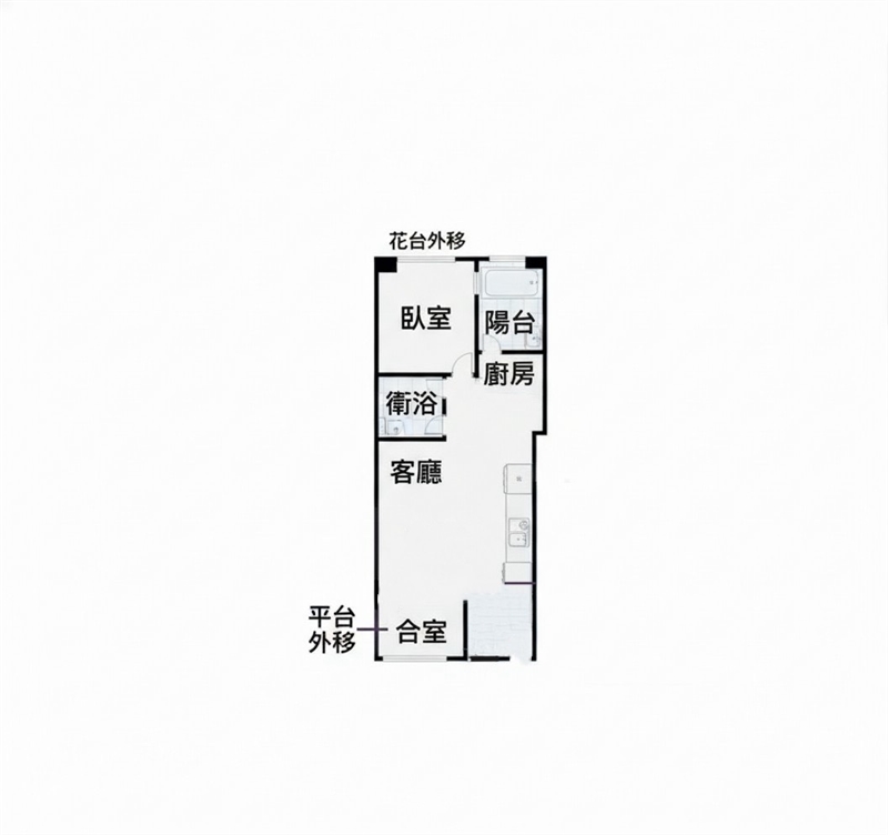 1.一房一合室,廚房一應俱全,衛浴全新整理